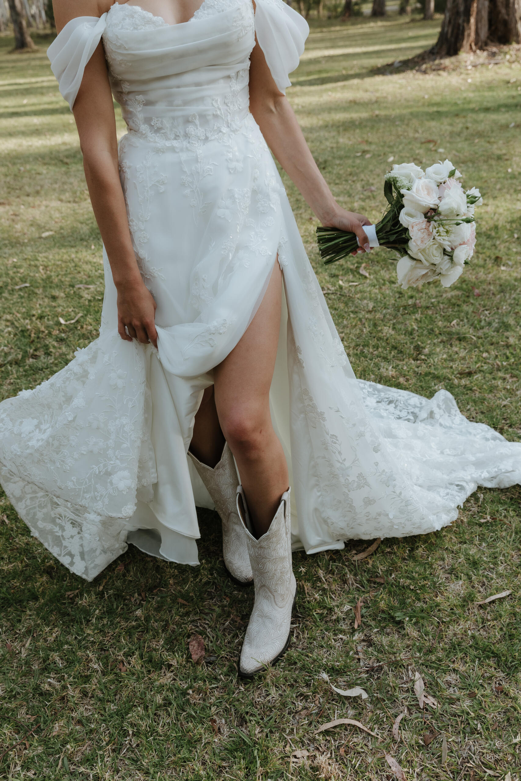 Lailyn is an ultra-romantic A-line gown made with an embroidered sequin beaded sheet lace with cascading florals throughout. Her reimagined modern bodice has the embroidered lace peeking out to create a perfect sweetheart neckline for a faux illusion look.