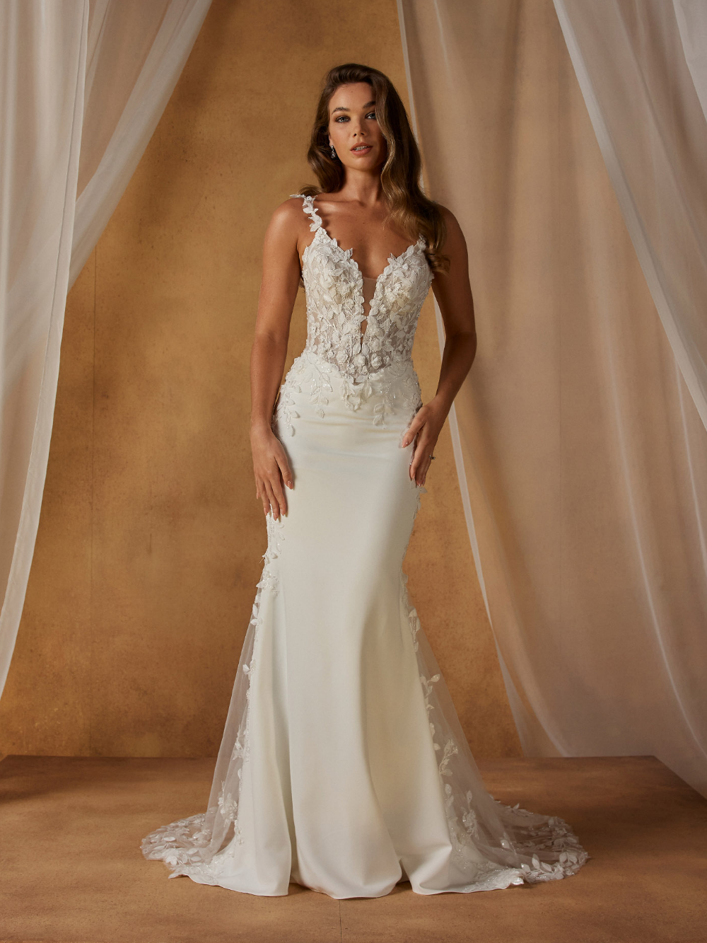 Modern, refined, and softly romantic, Niall-Lee by Madi Lane Bridal blends luminous detail with clean minimalism for a fresh interpretation of femininity. With a sculpted fit-and-flare silhouette and a beautifully balanced mix of texture and simplicity, she offers elegance with contemporary softness.